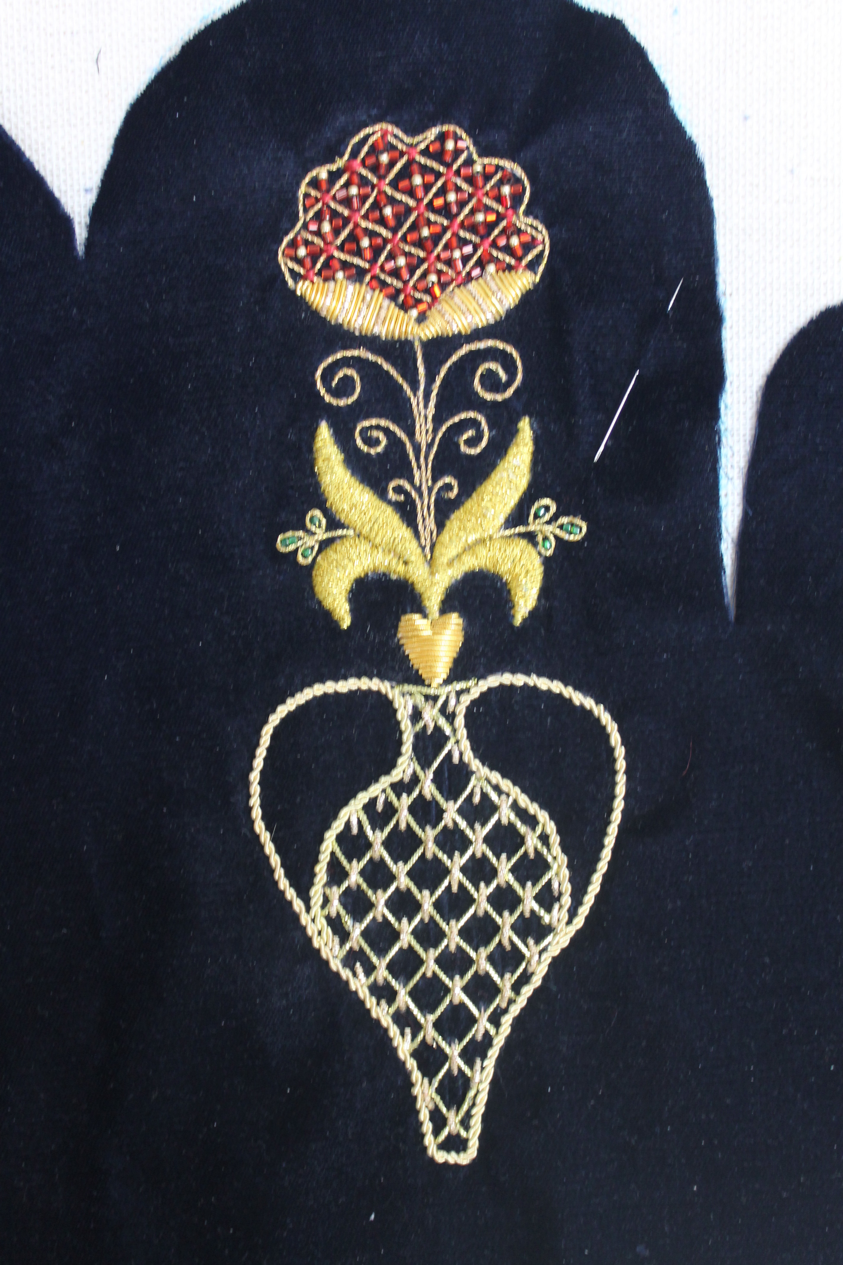 брошка, рукавички и косметичка + техника шитья "насыпь канителью" в подарок